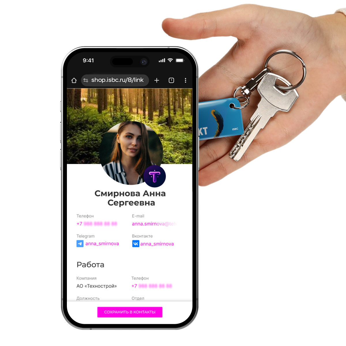 Милейший брелок с NFC-визиткой «Не разлей вода» от ISBC - это не только стильный аксессуар, но и удобный инструмент для обмена контактами. Благодаря технологии NFC вы можете быстро и легко передавать информацию с помощью этой визитки.