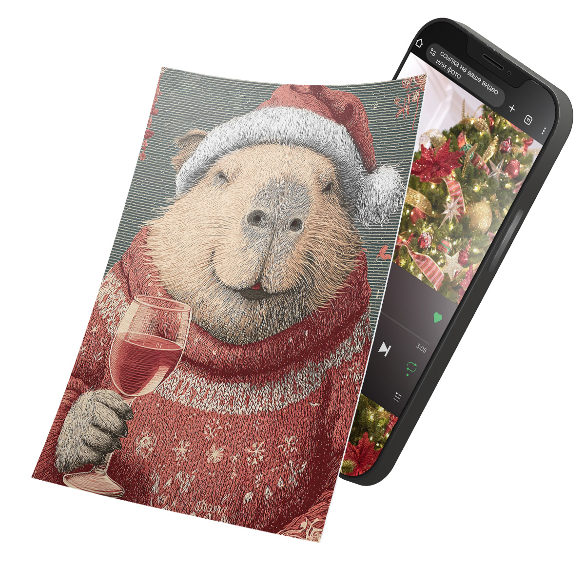 Откройте для себя уникальный способ поздравить близких с наступающим годом с помощью интерактивной открытки с NFC "Удачи в Новом году!" от ISBC. На стильной обложке — обаятельная капибара в новогодней шапке и уютном свитере, которая держит бокал с напитком, приглашая встретить праздник с улыбкой и добрыми пожеланиями. Такая открытка вызовет настоящее восхищение у получателя и станет приятным символом счастья, уюта и веселья.