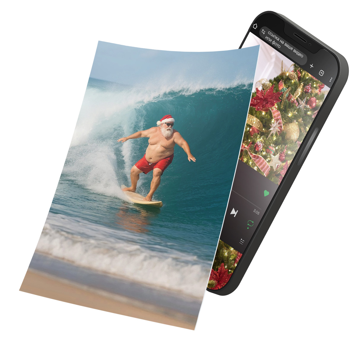 Подарите праздник с изюминкой! Интерактивная открытка с NFC "Санта на волне: отпуск начинается!" — это ваш способ удивить близких оригинальным новогодним поздравлением. Яркое изображение Санты в красных шортах, катающегося на серфе по океанской волне, сразу вызывает улыбку и идеально подходит тем, кто мечтает о необычных новогодних эмоциях.