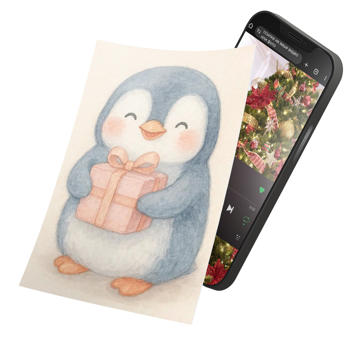 Зачем ограничиваться обычными открытками, когда есть "Новогодние зверушки; Пингвинёнок" от ISBC! Этот милый пингвиненок с праздничным подарком на акварельном фоне дарит настоящее зимнее чудо. Оснащённый NFC-чипом, он превращается в интерактивный подарок: отправьте поздравления, фото, аудио или видео прямо на смартфон получателя.