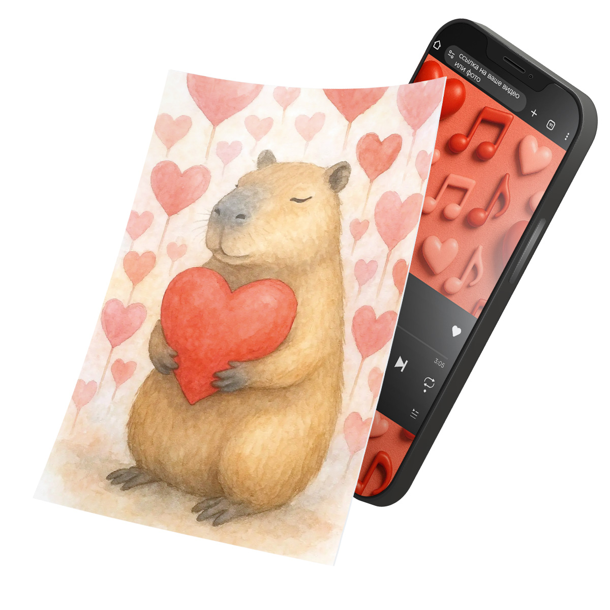 Подарите улыбку своему любимому человеку с интерактивной открыткой "Влюбленная капибара"! Эта милая открытка не только порадует своим дизайном, но и позволит вам записать персональное сообщение через NFC. Добавьте забавные моменты, музыку или видео, чтобы сделать ваше признание еще более запоминающимся. Пусть ваша любовь будет такой же теплой и нежной, как капибара!